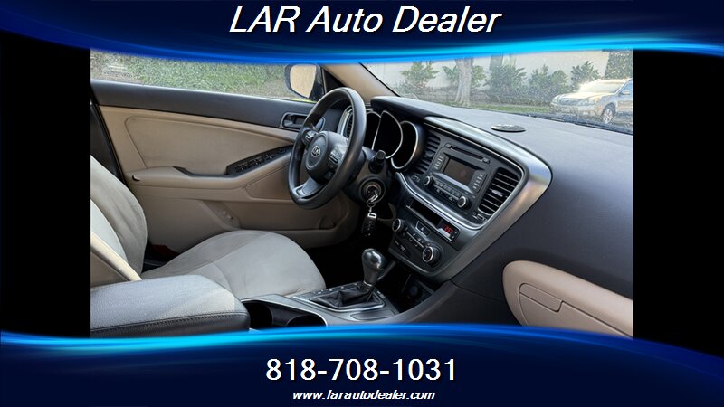 The 2015 Kia Optima LX is a stylish and efficient sedan, featuring a 2.4L I4 engine that delivers 192 horsepower and 181 ft-lbs of torque. With a sleek burgundy exterior and a comfortable beige interior, this vehicle offers a modern aesthetic combined with practicality. Standard features include a 6-speaker audio system, Bluetooth connectivity, a 5-inch touchscreen display, and a rearview camera for added safety. The Optima also boasts a spacious cabin with ample legroom and trunk space. With a fuel efficiency rating of 23 MPG in the city and 34 MPG on the highway, this sedan is an excellent choice for both daily commuting and longer drives. This vehicle is in excellent overall condition, ready for its next owner.